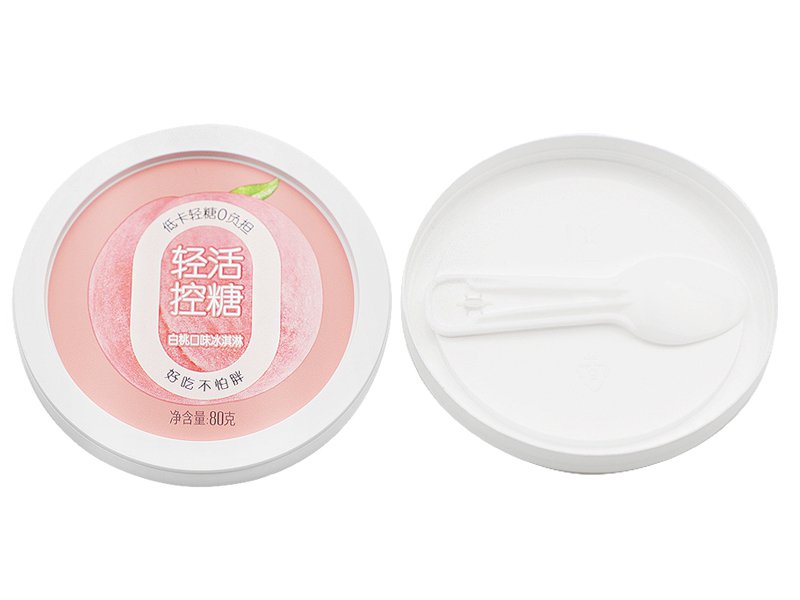 - Пластиковая круглая крышка с IML этикеткой с ложкой Ø71,86 мм, CX023Диаметр: Ø71.86 мм