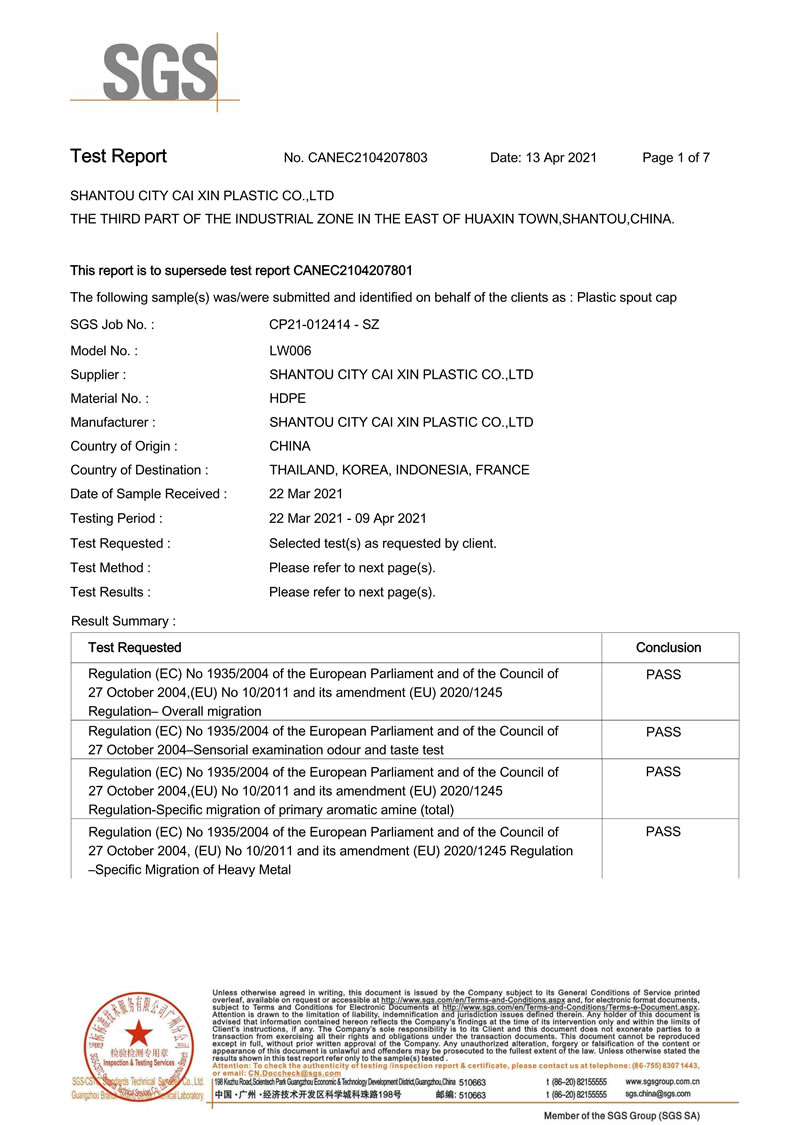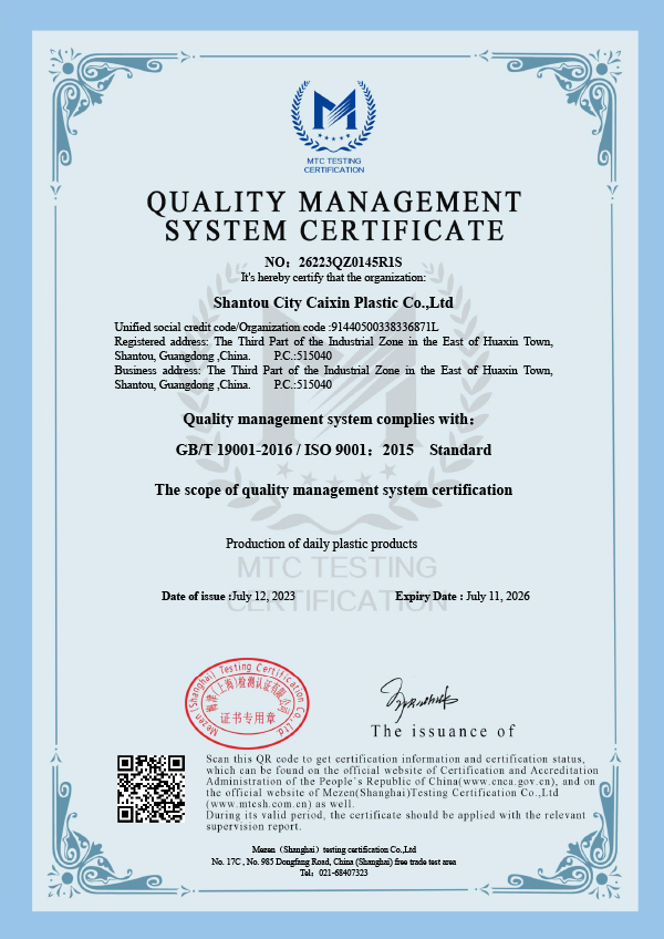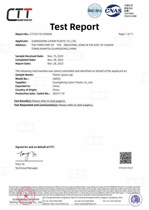 Компания Caixin Plastic имеет сертификацию ISO9001, сертификацию SGS и FDA. В настоящее время мы способны производить более 1000 различных типов пластиковых контейнеров, носиков и крышек, которые широко используются в биофармацевтической, химической, пищевой, автомобильной и многих других отраслях промышленности.